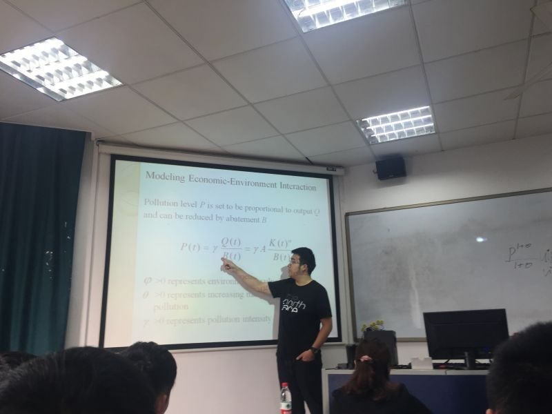 在此次学术研讨会中,华岳老师以他的一篇论文为基础讲述空间计量经济学的相关知识。该论文考察了正在进行的“新型城市化”进程对我国城市空气质量的影响。文章采集了284个地级城市从2003到2012年的数据,运用改进的可拓展的随机性的环境影响评估模型,对人口、财产和技术三个自变量和因变量之间的关系进行评估。最终发现“新型城镇化”对当地环境产生负面影响,也通过空间衰减和区域的行政壁垒影响邻近城市的空气质量。随后,华老师介绍了空间计量经济学的两个主要模型:空间杜宾模型和空间杜宾误差模型,并推荐了两本空间计量经济学的经典书籍。华老师思维严谨、谈吐文雅,研讨会气氛热烈。最后,师生互动,对有关问题展开了激烈的讨论。