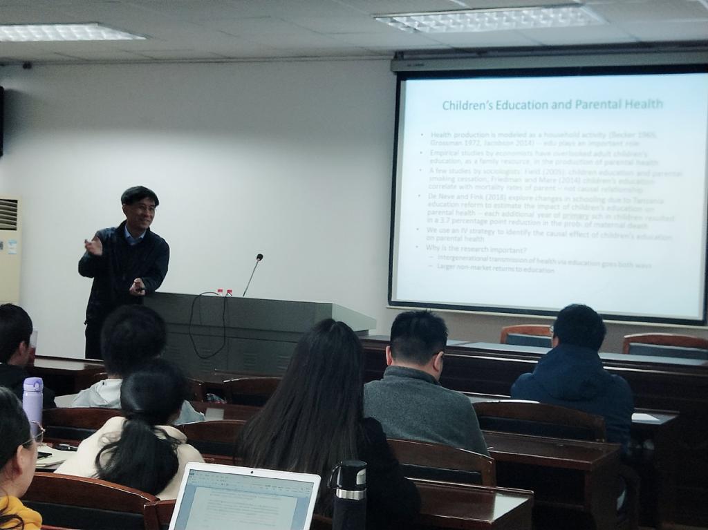 北校区行政楼401如期举行。此次研讨会的主题为“Children’s Education and Parental Health: Evidence from China”,主讲人为刘智强教授。