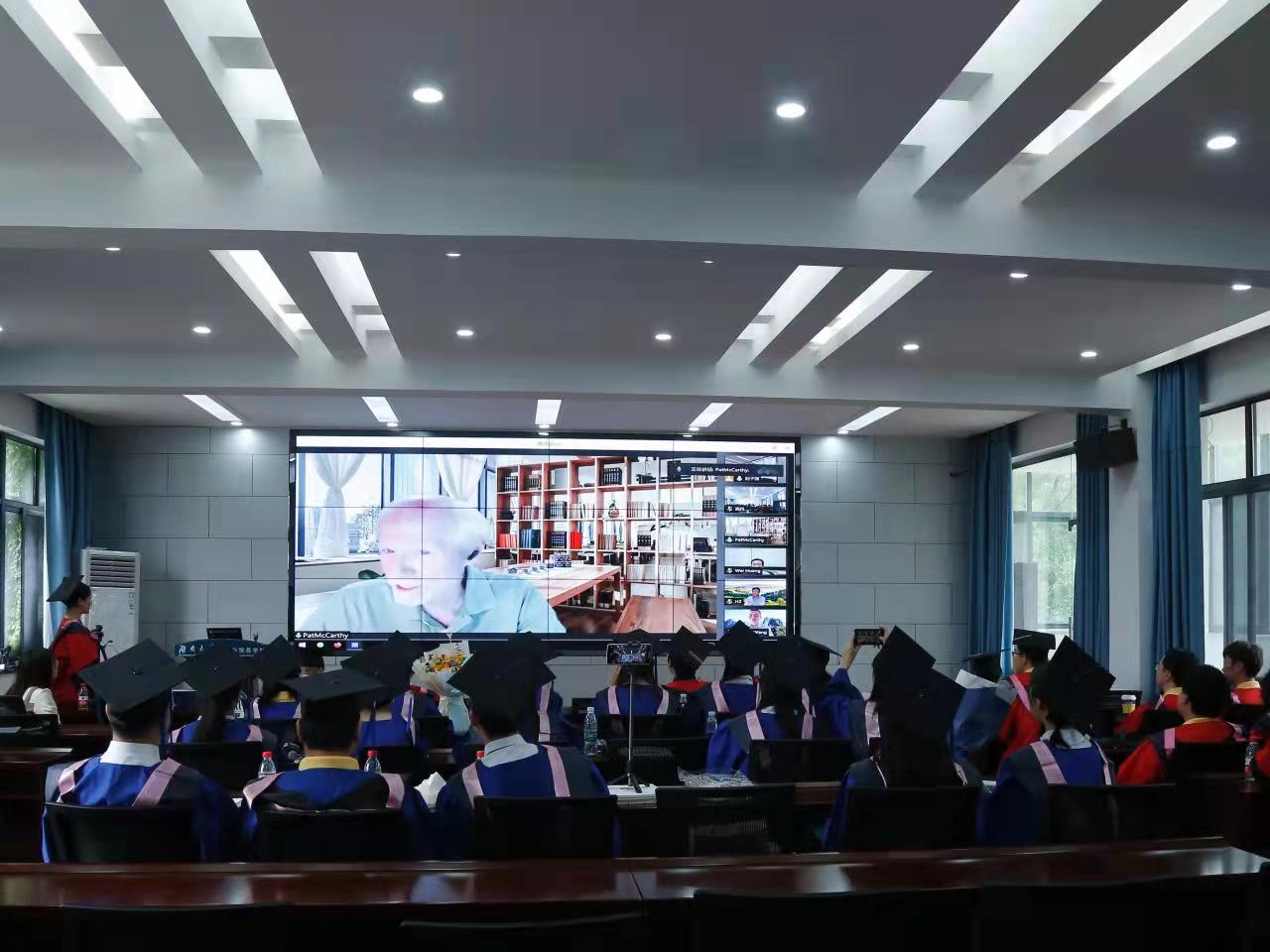 因疫情无法归国的特聘教授王小军教授、黄巍教授、Patrick McCarthy教授与Allan Zebedee教授均以视频连线形式参加毕业典礼,他们向毕业生致以祝愿,对毕业生未来寄予殷切期望,希望毕业生们怀着新的梦想,走向新的征程,正值青春佳时,勇敢逐梦,踔厉奋发,笃行不怠,让青春之花在不懈奋斗中绚丽绽放。