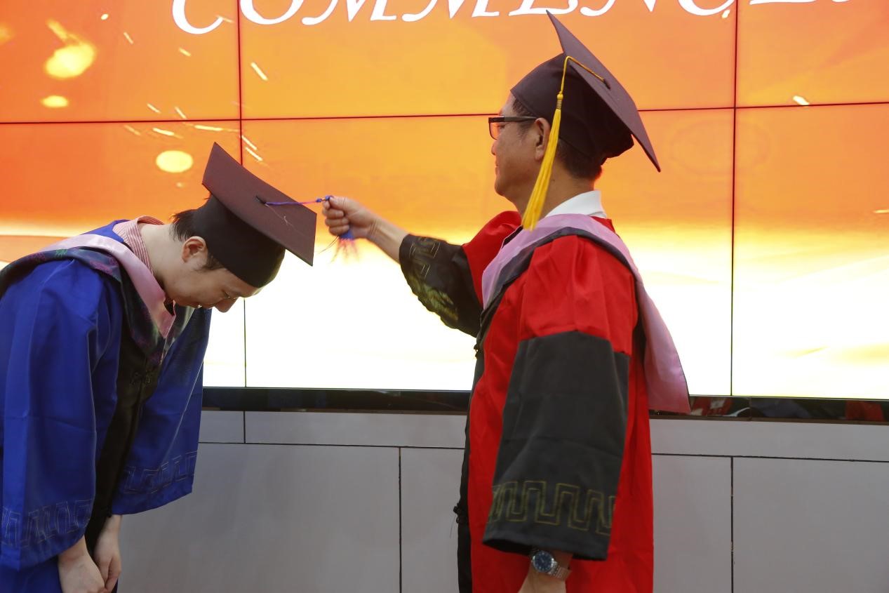 最后,李海峥教授总结发言,祝贺毕业生顺利完成学业。学位授予仪式于上午10:30正式开始,李海峥教授为20名硕士毕业生拨穗,发放毕业证书,并与各位毕业生一一合影留念