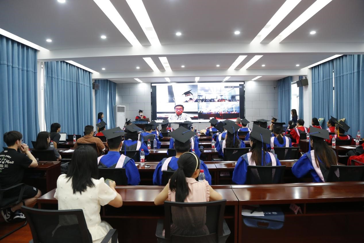 上午9时,经管中心党支部书记胡宗义教授致辞,他告诉同学们“今后走出校园仍要继续追求真理,独立思考,艰苦创业,自强不息,牢记历史使命,以自己的行动回报社会”。随后,国际知名学者Allan Zebedee教授、王小军教授、Patrick McCarthy教授、刘智强教授依次发言,还有远在重洋之外无法赶来参加典礼的黄巍教授与刘千秋教授也在线向毕业生们送出了最诚挚的祝福,教授们对毕业生们寄予厚望,少年当有凌云志,万里长空竞风流。