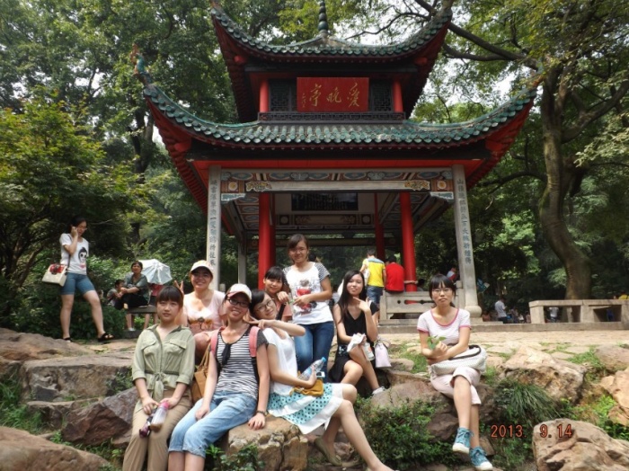 Yuelu Mountain Scenic Area is the national key scenic spots and is one of the Hengshan Mountain 72 peaks. Located in the ancient city of Changsha, along with Xiangjiang River, it consists of the hills of low mountains, rivers, lakes, natural flora and fauna and cultural heritage, modern celebrity graves, revolutionary memorial sites, etc. It is a kind of the city scenic mountain area.Hunan University takes advantage of the mount and builds around it. Naturally, our university takes the Yuelu Mountain as the dividing line of north and south campuses. Along the way, we talked about school learning and life sentiment while climbing the mountain and atmosphere was very harmonious. Teachers were very concerned about our living and learning situation and made some very valuable advice to us. Within half an hour we climbed on the top of the hill. There we saw beautiful scenery and panoramic views of the entire Changsha. Teachers and students took pictures at the top, talked cordially with each other and were reluctant to leave.